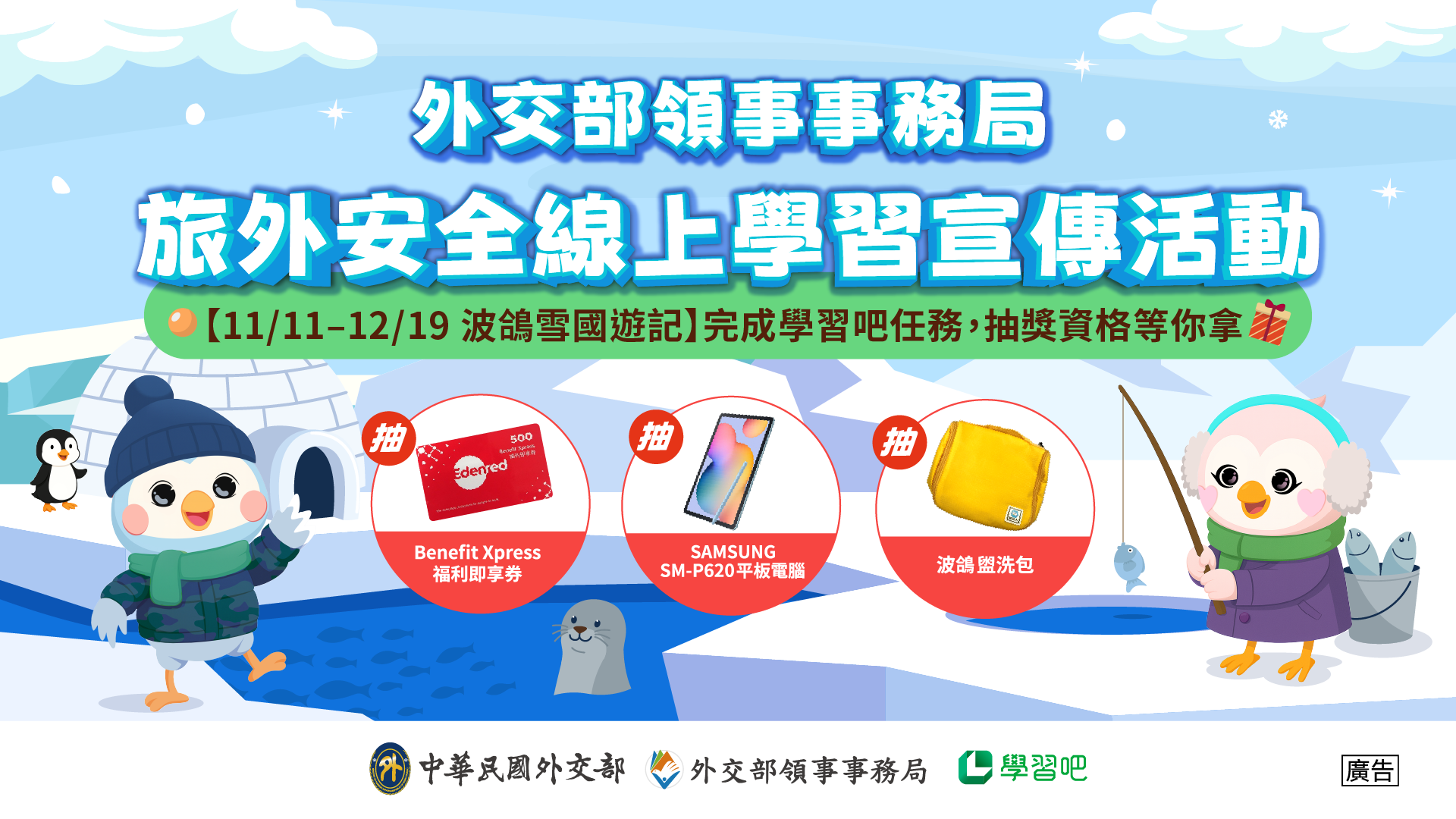 因應全球化趨勢與疫情後跨國旅遊及打工度假需求增加,為了讓學生們能在拓展視野的同時,具備充足的旅遊安全知識與國際交流的能力,外交部領務局攜手學習吧平臺,將旅遊安全知識轉化為遊戲化學習任務,設計了一系列適合國小、國中及高中學生參與的線上學習課程;另搭配教師研習及入校推廣活動,讓旅安知識也能應用於課堂、走入校園。
