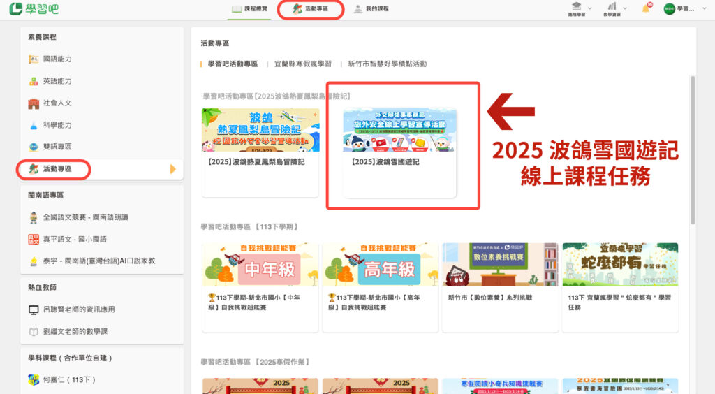 凡參加【2025 波鴿雪國遊記】線上課程任務活動的同學,只要完成指定任務,累積 2500 分以上 👉 即可直接獲得【學習吧電子獎狀】🏆,還能解鎖抽獎機會!